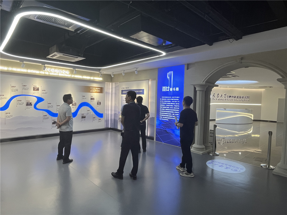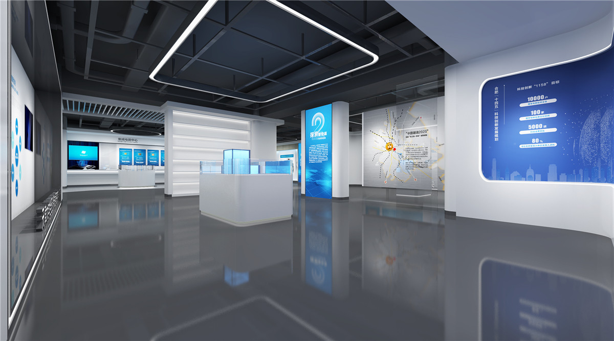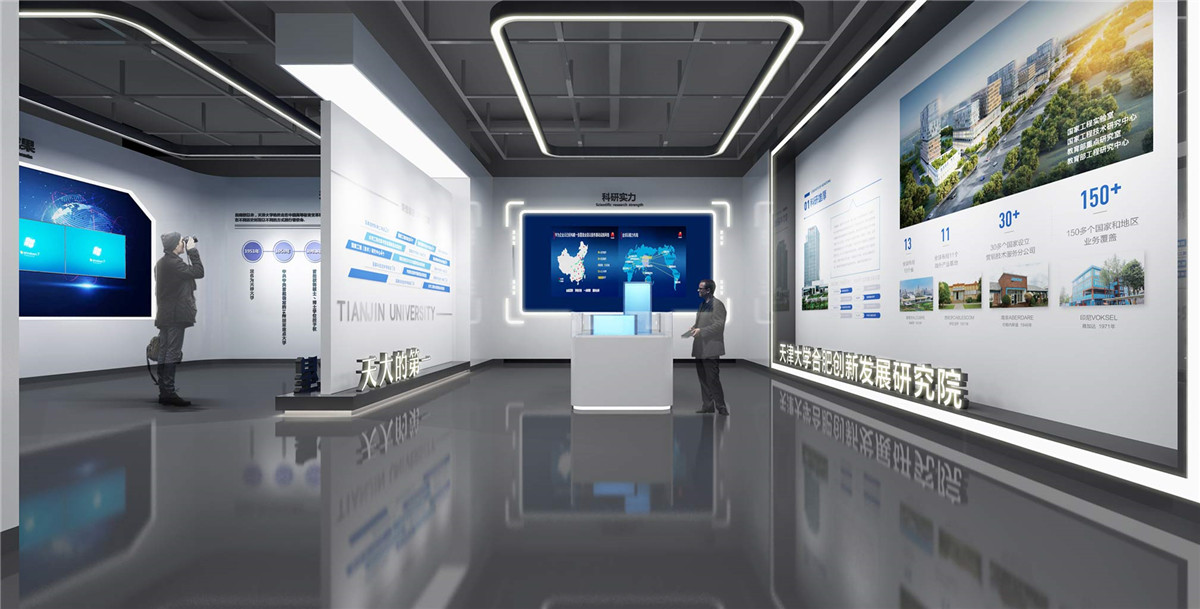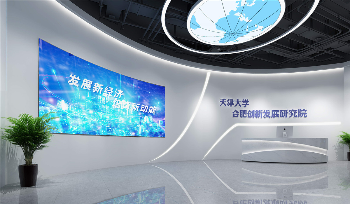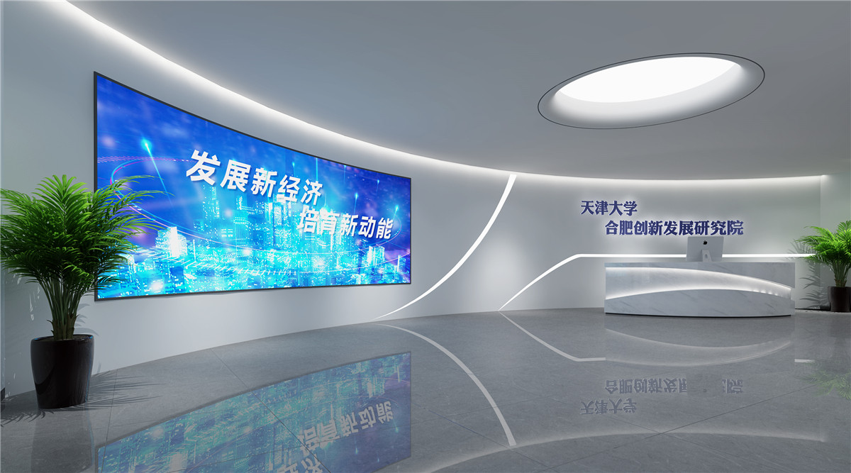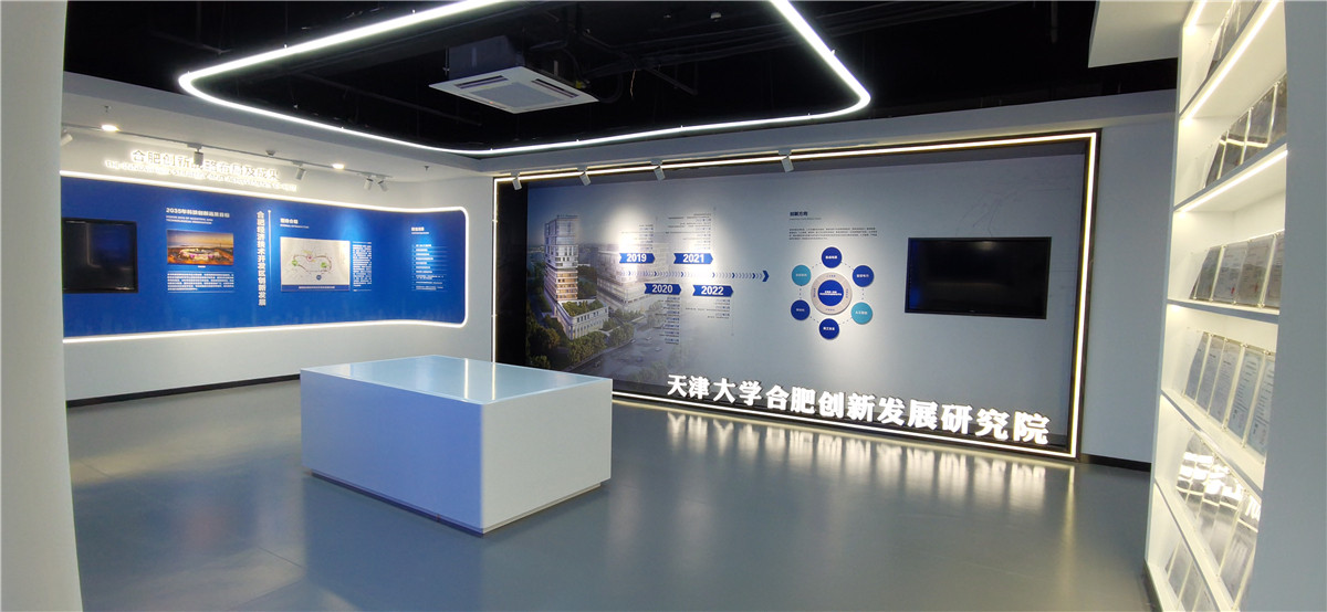 天津大学合肥创新发展研究院展示中心位于合肥市经济开发区中德创新合作创新院内,面积约为800平方米,由“寻根溯本源—我从哪里来、探索新征程—为何来这里、创新谋发展—我能为这里做什么以及展望—未来会怎样?”四部分组成。整体方案以研究院科技创新孵化体系及技术创新基地为基础,将高科技理念,智能数字媒体以及视觉艺术融合在一起进行展厅设计。正如研究院的建设,让科技插上驱动的引擎,必将为合肥创新发展乃至中国梦的实现提供科技发展原动力!