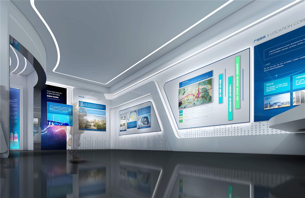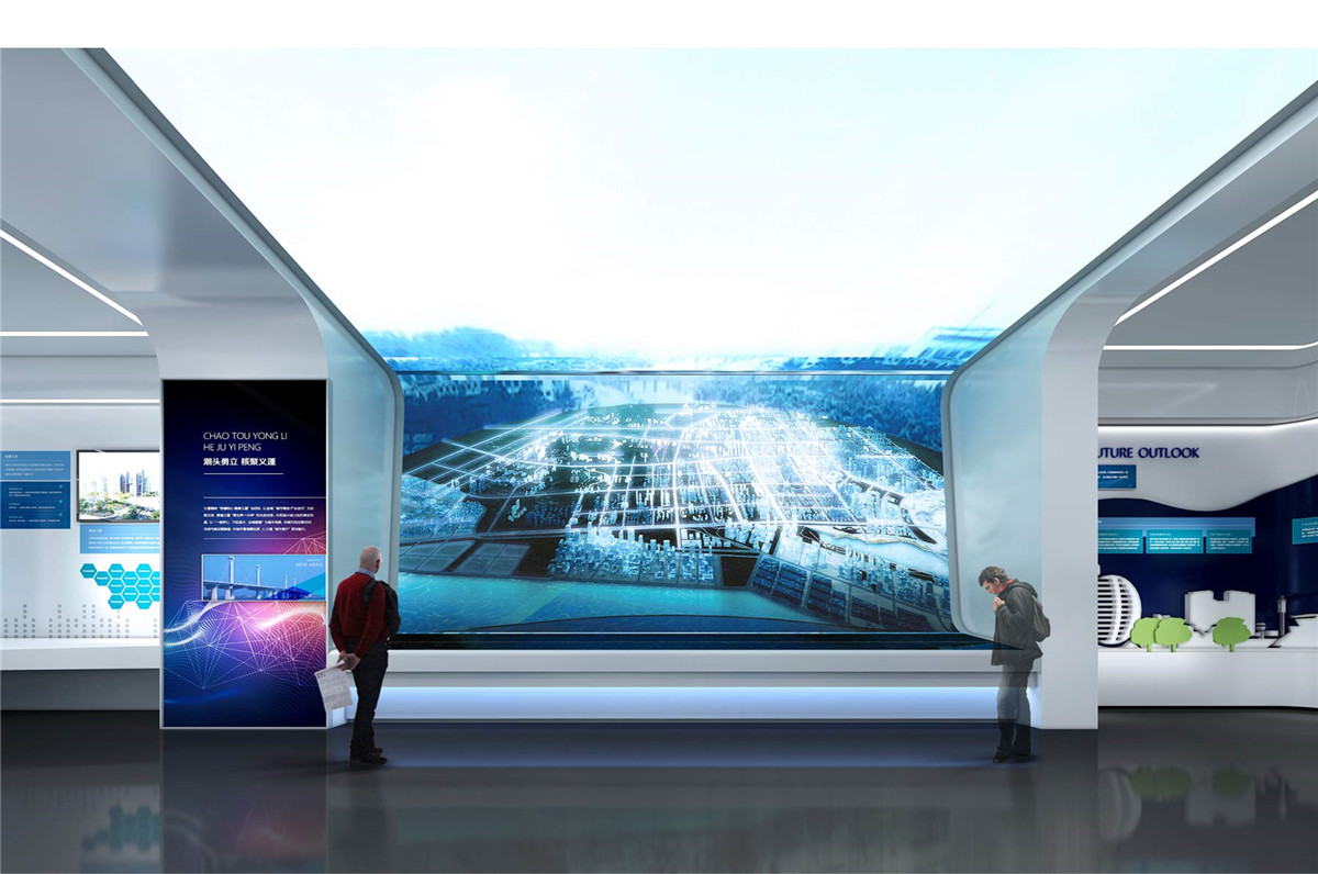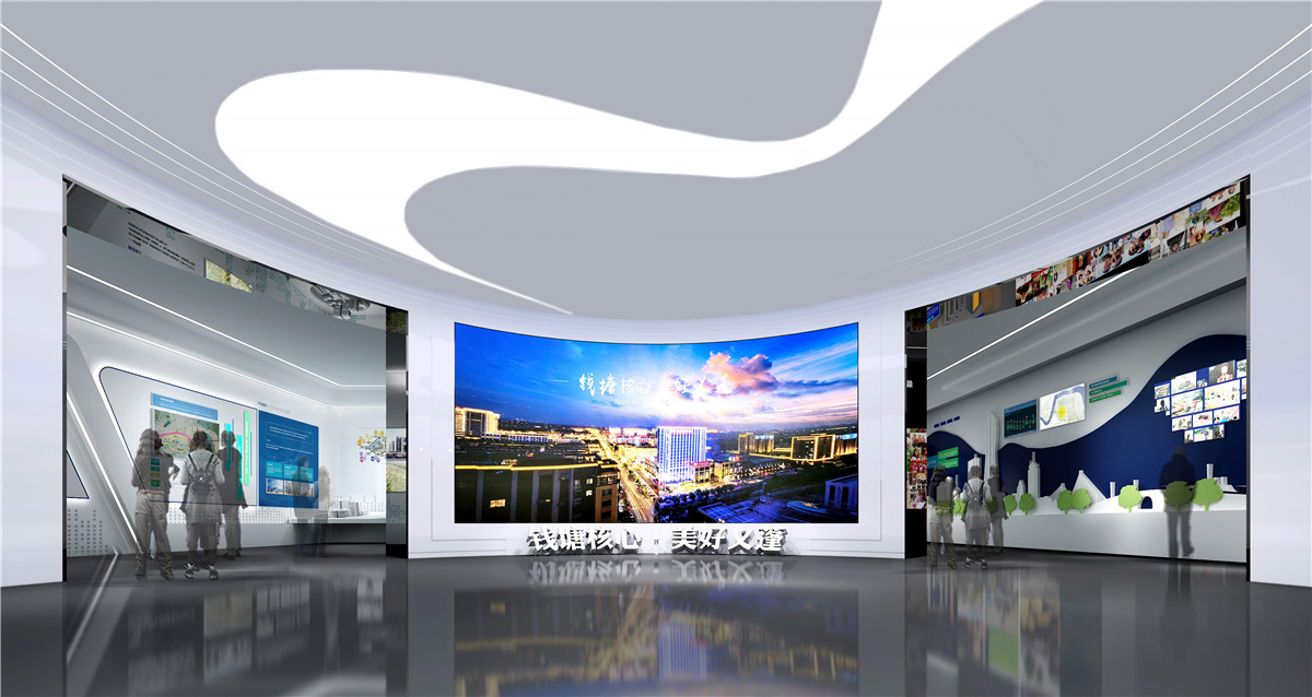 杭州义蓬城市客厅位于杭州市钱塘新区义蓬街道行政服务中心院内,建筑面积900平方米。方案以“钱塘核心·美好义蓬”为设计主题展现义蓬城市客厅,“核”展示义蓬在钱塘区的战略地位和创新产业;“美”展示义蓬街道城市建设的美好目标,是展厅空间设计的理念诠释。整体设计打破传统展馆的布展套路,将可读、可听、可视集为一体,力求全方位解读义蓬城市发展演变、建设成果的曲折历程,向观众展示美好义蓬的规划愿景。