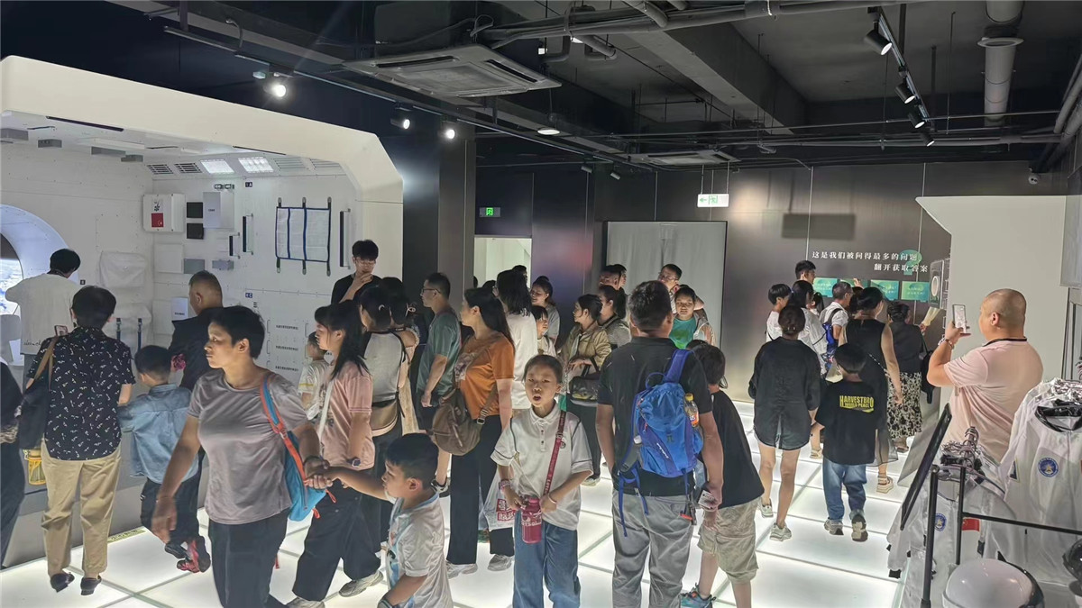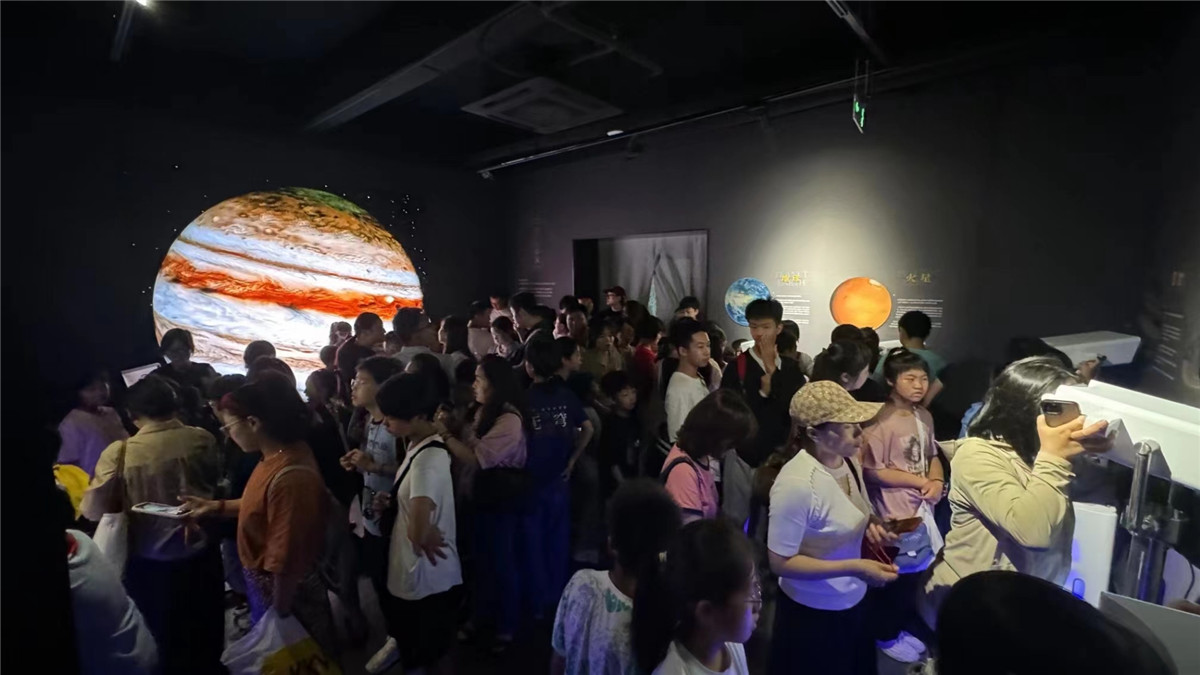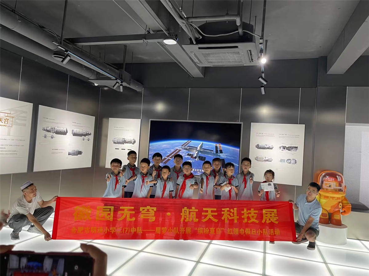 作为合肥经开区文旅融合的代表项目,无穹航天科技馆自2024年开馆以来,累计接待游客超19万人次,开展公益科普活动700余场,接待中小学研学团队超过3.2万人次。馆内近2000平方米的数字展厅,涵盖“火箭森林”“空间站”“八大行星VR体验”等15大主题展区,通过实物陈列、沉浸光影、互动装置等形式,让航天知识“活”起来。
